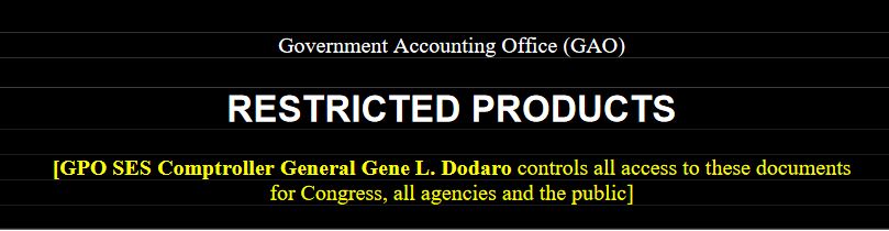 Mar. 26, 2018—The Comptroller of the United States, Gene L. Dodaro, controls access to many critical policy documents that neither the Congress, agencies or the public are allowed to see without his (the SESs) approval.